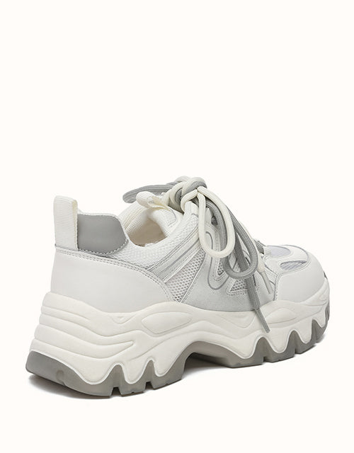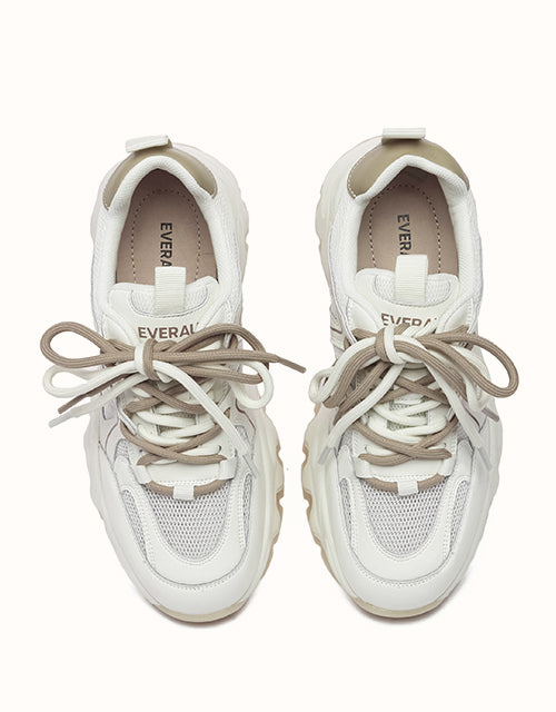 Showcase your style with the EVERAU Carter Chunky Sneakers, combining essence, a trendy touch, and a retro vibe. Designed with a chunky sole for enhanced support and a striped pattern outsole for excellent grip on all surfaces. Featuring a playful twist on the traditional laces with two-tone designs, these sneakers will effortlessly elevate any outfit — perfect for walking, coffee dates, or running errands.