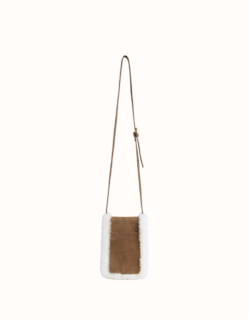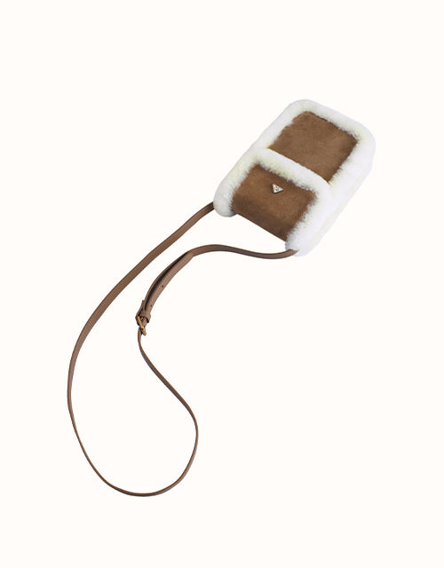 This envelope-style flap bag combines soft shearling accents with premium suede leather for a charming and compact design, perfect as a phone bag. Featuring a sleek triangular EVERAU metal logo on the front, it adds a touch of elegance. The adjustable long strap offers versatile carrying options, whether crossbody or over the shoulder. With a practical interior for daily essentials and a secure magnetic closure, this bag ensures both style and functionality for effortless outings.