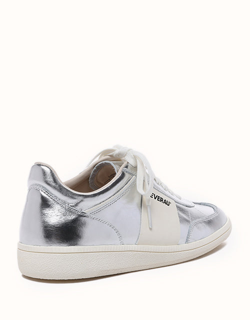 Elevate your style with the EVERAU Edie Leather Sneakers. Offered in classic white and striking metallic silver, these sneakers effortlessly blend sophistication with a bold edge. Pair them with jeans and a white tee for a relaxed vibe or dress them up with tailored trousers and a blazer for a chic, polished look. Versatile and stylish, they’re the perfect go-to for any occasion.