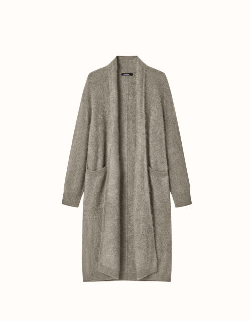The EVERAU® Grumo Coat is a long, lightweight knit cardigan crafted from a soft yak-wool cashmere blend. Its relaxed straight silhouette, open-front design and smooth drape make it an effortless layering piece for cooler days. Minimal, elegant and versatile — easy to throw over workwear, basics or winter knits for a refined everyday look.