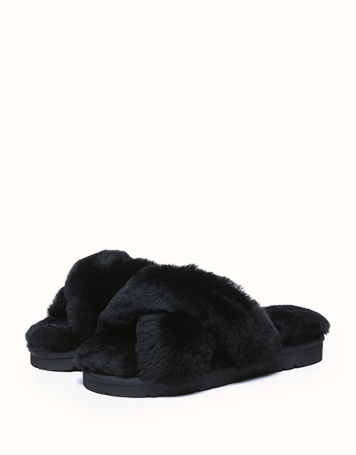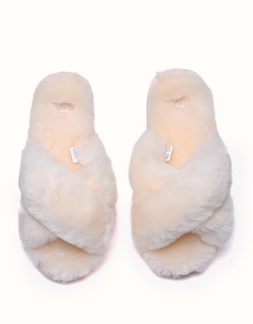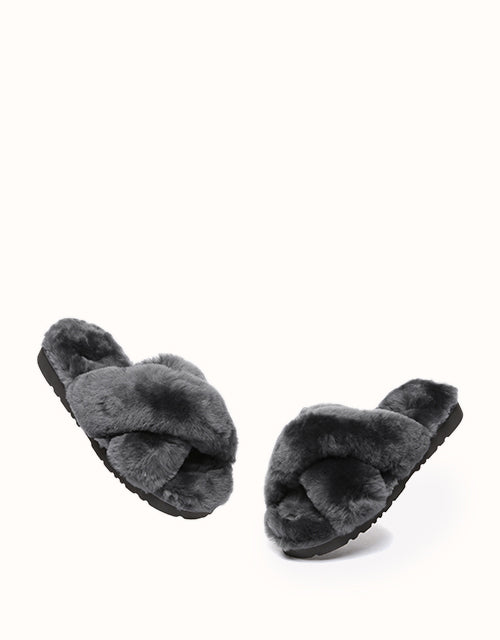 Keep your feet warm and cozy with the EVERAU Leanna Fluffy Slides. Designed for easy wear, these slides are fully lined with soft sheepskin wool, providing unmatched comfort with every step. Available in four stylish colors, they combine elegance and comfort, making them the perfect choice for relaxing at home in your favorite loungewear or pajamas.