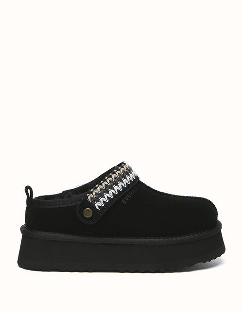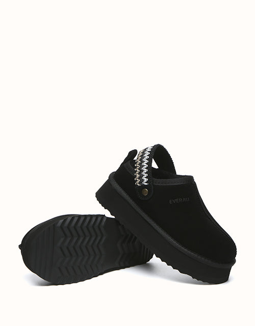 Say hello to the EVERAU Maeve Platform Slingback Slippers—a must-have for trendsetters. Designed with a stylish platform and easy slip-on fit, these slippers effortlessly elevate any look. Available in a range of colors to match your style, they’re the perfect blend of fashion and function. Made from luxurious sheepskin, they offer exceptional warmth on cooler days while adding a chic touch to your wardrobe.