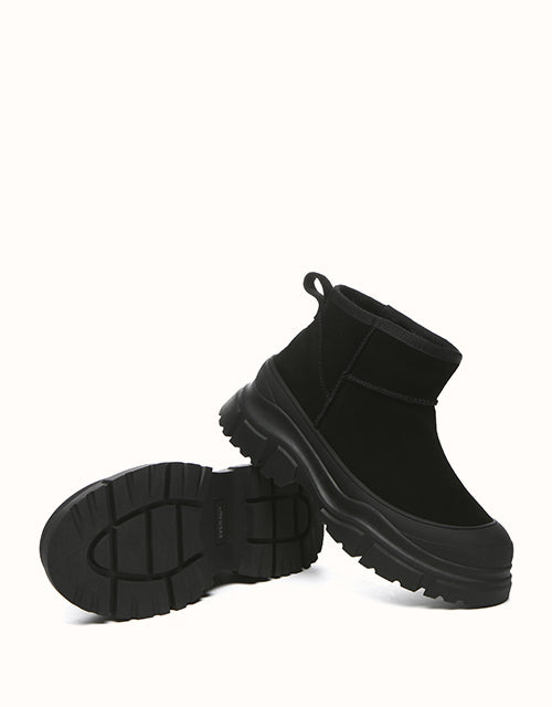 Experience comfort with every step in the EVERAU Mouni Chunky Platform Boots. Available in multiple color options to match your style and outfit choices, these boots are designed to keep you cozy while adding a touch of sophistication with their timeless design and chunky soles. Built with a durable structure for excellent floor grip and lined with luxurious sheepskin, they provide exceptional warmth on cooler days.