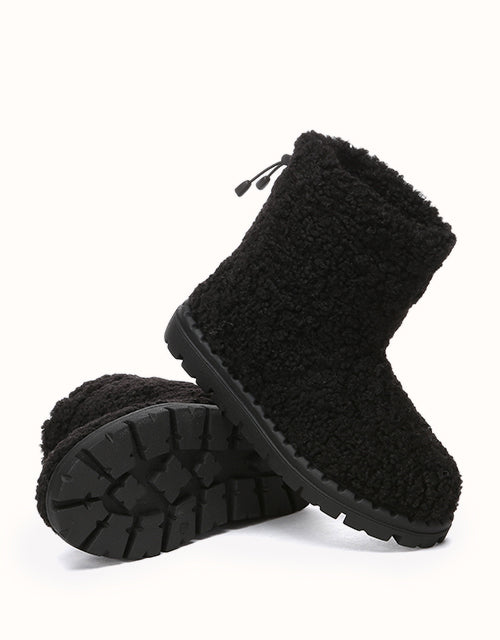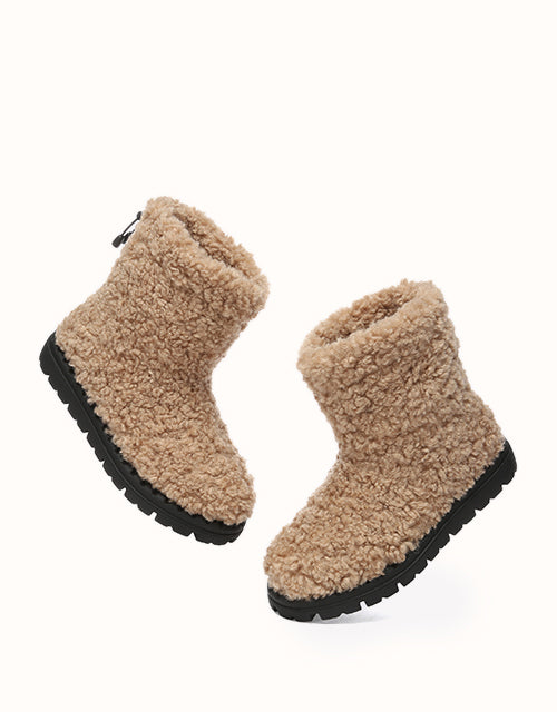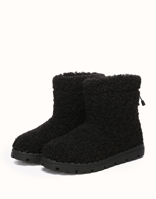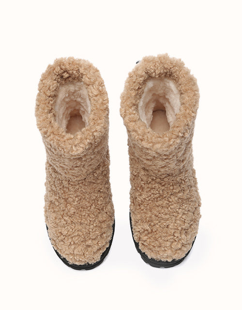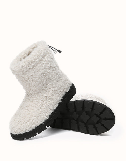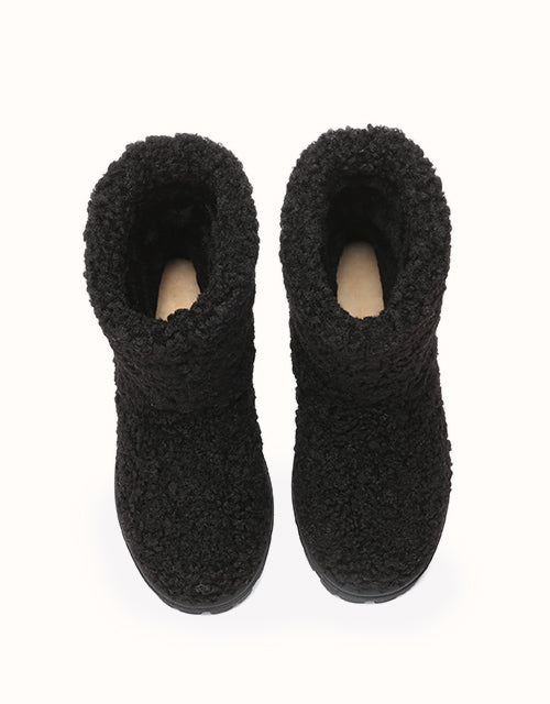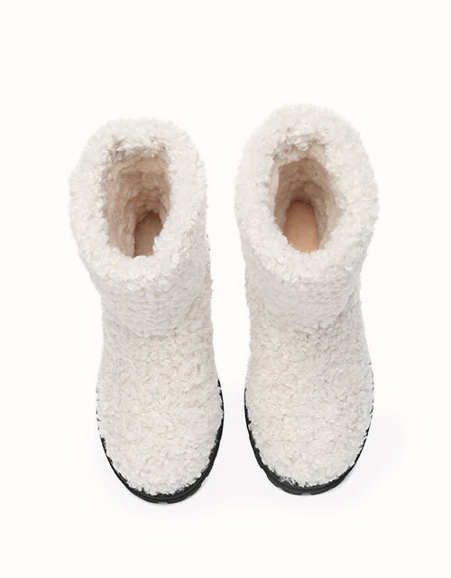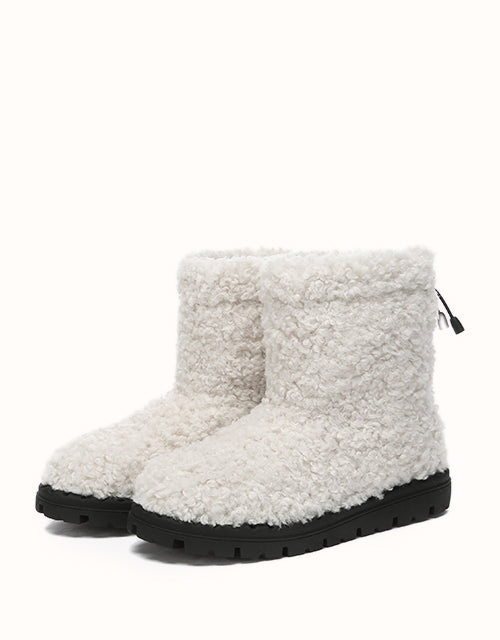 Stay cozy and chic with our Ripple Fleece Snow Boots, featuring a trendy textured faux shearling upper with soft, bouncy curls for a stylish look. Lined with premium Australian Merino wool, provides exceptional warmth, and moisture-wicking comfort. The adjustable drawstring cuff ensures a snug, windproof fit, while the durable TPR outsole offers anti-slip grip and cushioning support. These boots combine practicality with elegance, making them perfect for winter outings in style.