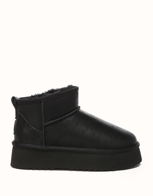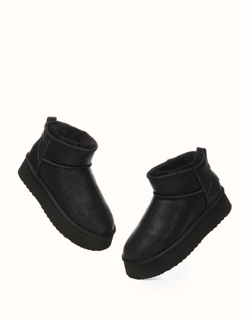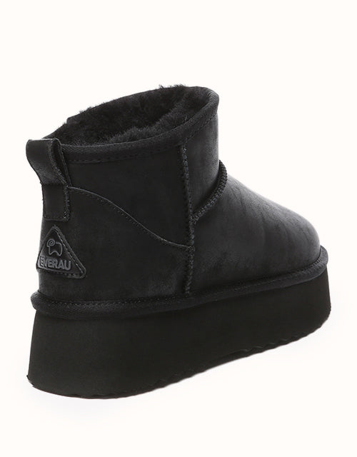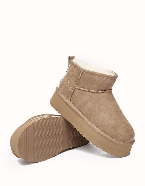 Step into timeless winter style with these chic mini slant-top snow boots, featuring a front-high, back-low silhouette crafted from premium water-resistant suede leather. Designed with breathable and durable Australian craftsmanship, they pair effortlessly with any outfit. Lined with luxurious Merino wool, these boots provide superior warmth, moisture-wicking comfort, and temperature regulation for all-season versatility. The 4cm platform EVA sole offers lightweight elevation, flexible support, and excellent grip, ensuring every step is as comfortable as it is stylish. Perfect for the season, these boots combine functionality and fashion in one iconic design.