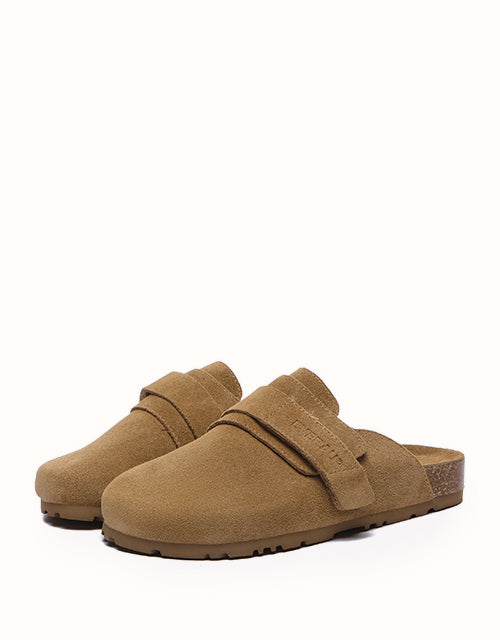 Designed with ergonomic precision, these shoes feature a boat-shaped functional footbed for optimal support. The biomimetic heel pad with a cup-shaped groove cradles the heel and protects the ankle, while side arch support aligns with the foot's natural curve to reduce pressure and enhance stability. Stylish details include adjustable double Velcro straps for a layered aesthetic, a half-covered slip-on design for effortless wear, and a durable thick sole made from lightweight EVA foam for superior cushioning, grip, and wear resistance.