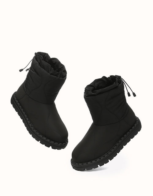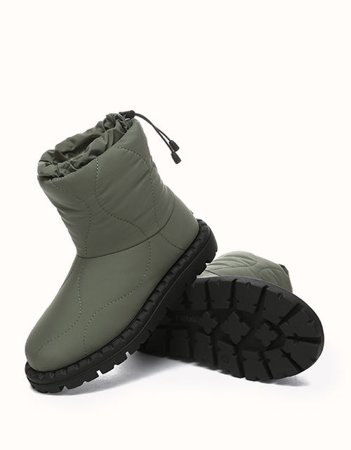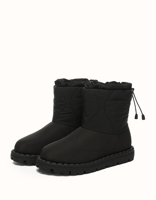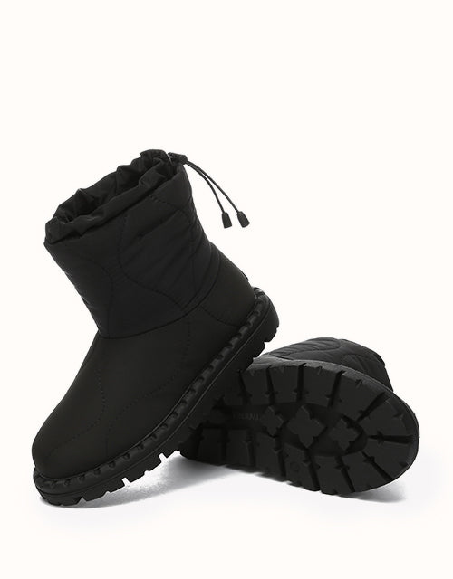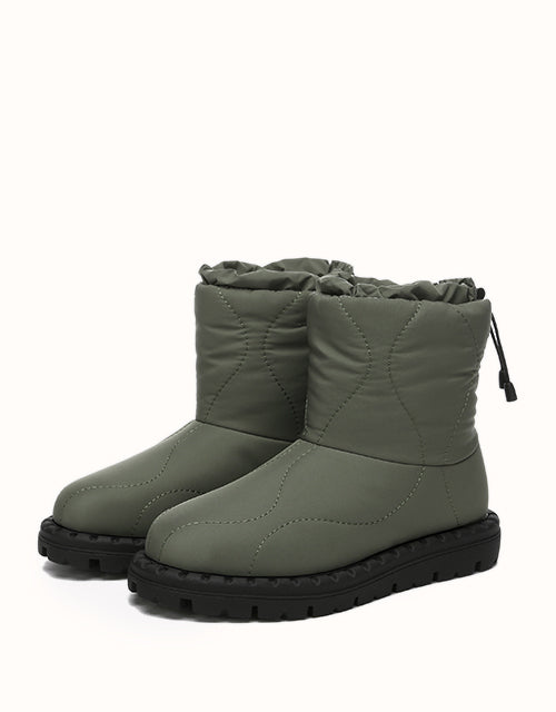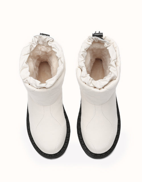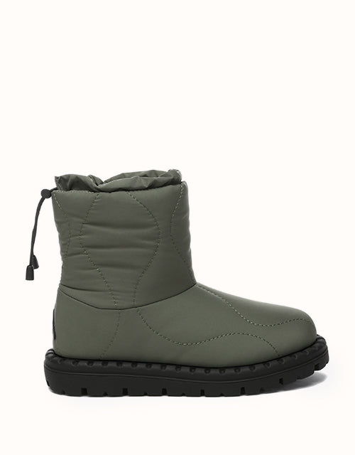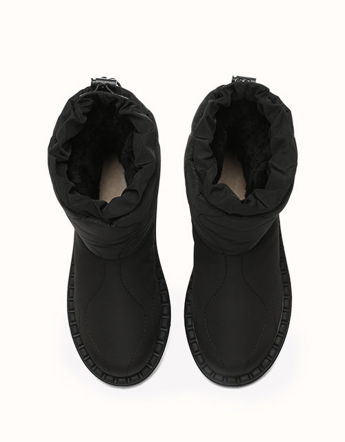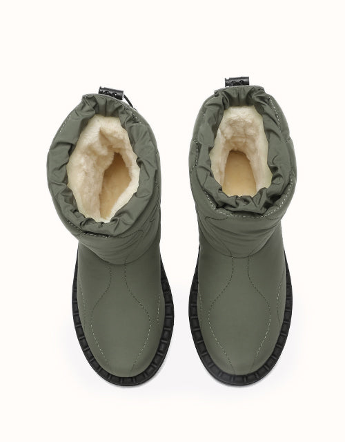 Combining style and comfort, these boots feature a soft umbrella fabric upper with a trendy puffer design. Lined with premium Australian Merino wool for warmth and moisture-wicking comfort, they also include an adjustable drawstring for windproof protection. The durable TPR outsole ensures grip and support, making them perfect for outdoor and everyday wear.