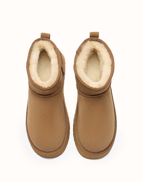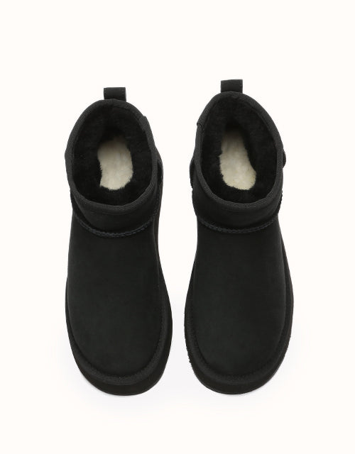 The ankle-height classic snow boots are a timeless winter staple, crafted with a sleek suede finish for breathable comfort and a minimalist Aussie-inspired design. Made with premium Australian Merino sheepskin, the plush 18mm wool lining offers superior warmth, moisture-wicking, and a soft, irritation-free feel—even when worn barefoot. Featuring an ultra-light EVA foam midsole for a "zero-gravity" wearing experience. The durable dual-layer sole combines a stylish platform with a rugged rubber outsole for exceptional traction and long-lasting wear.