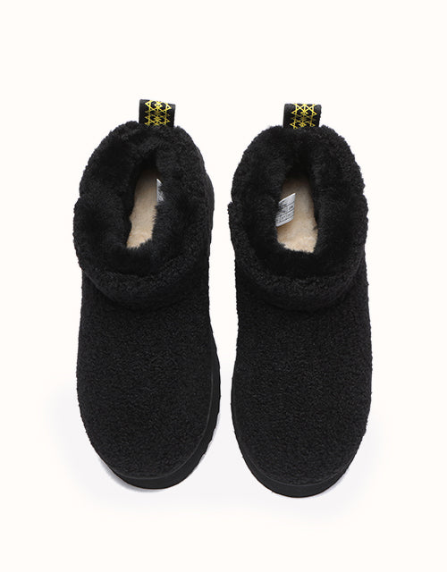 The trendy teddy fleece upper, lined with premium Australian Merino wool, they provides exceptional warmth, is moisture-wicking, and has a cozy, skin-friendly fit. The lightweight EVA platform sole adds height and bounce while delivering excellent durability and flexibility. The boots offer a luxurious and fashion-forward look, complemented by rich autumn-winter hues. Perfect for embracing the relaxed vibes of the season with a bold and confident stride.