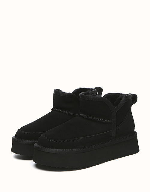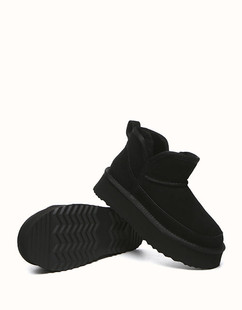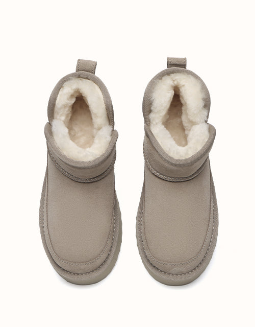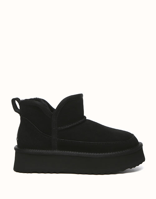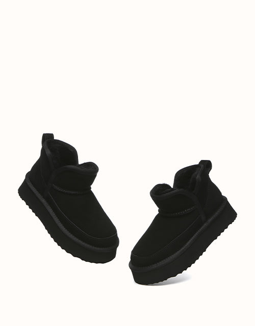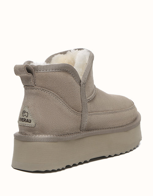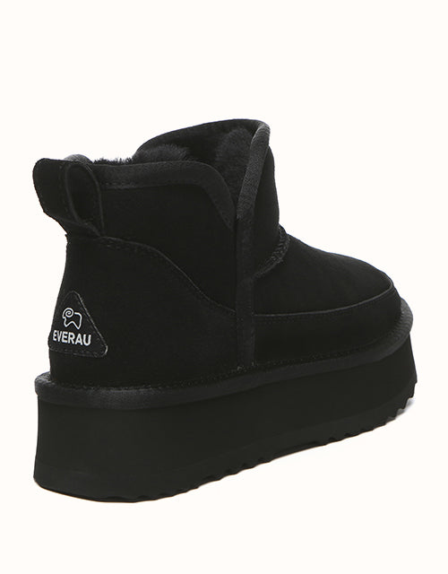Step into warmth and comfort with the EVERAU Vesper Ankle Platform Boots, crafted from luxurious sheepskin. With a classic and timeless design, these boots are made to complement any outfit. Available in a range of colors to match your style, they’re the perfect addition to your wardrobe, ideal for various occasions.