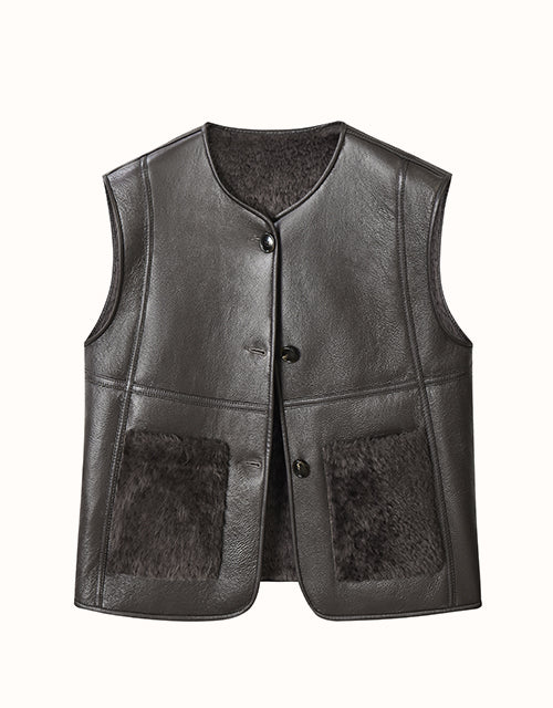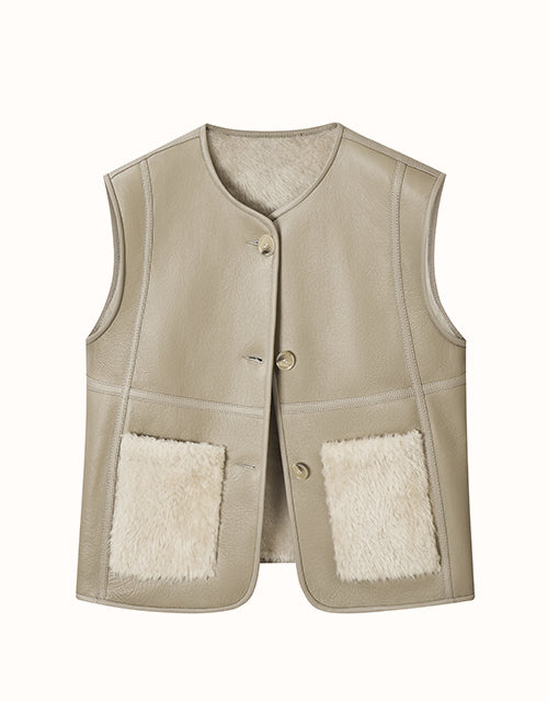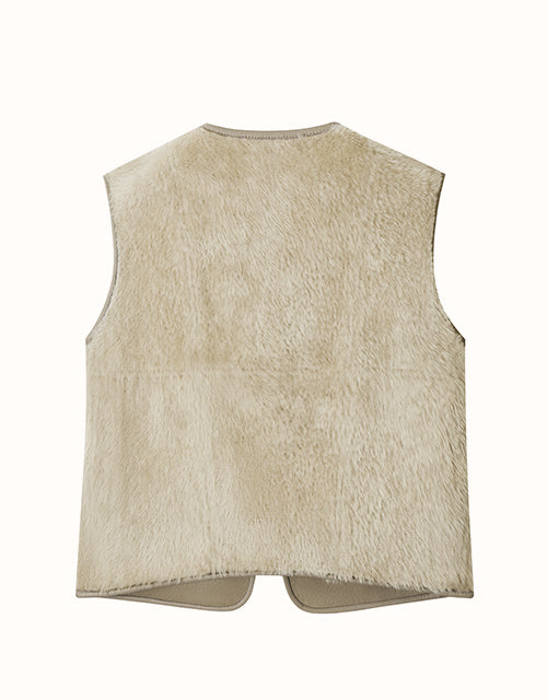 Crafted from double-face sheepskin wool, the Voreo Reversible Vest offers a refined balance of warmth and structure. Designed to be worn two ways, it features a soft wool interior and a clean suede exterior, making it an effortless layering piece for everyday city wear.
