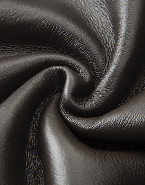 This garment is crafted from double-face sheepskin and should be professionally dry cleaned only to preserve its natural texture and structure.