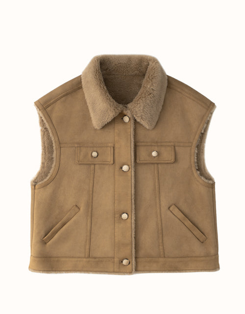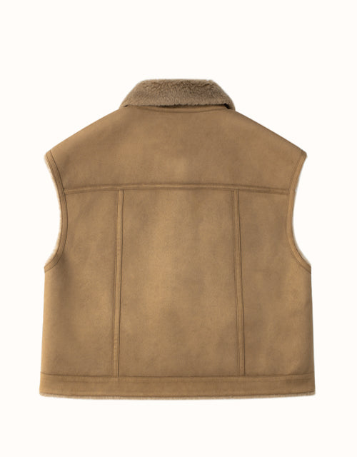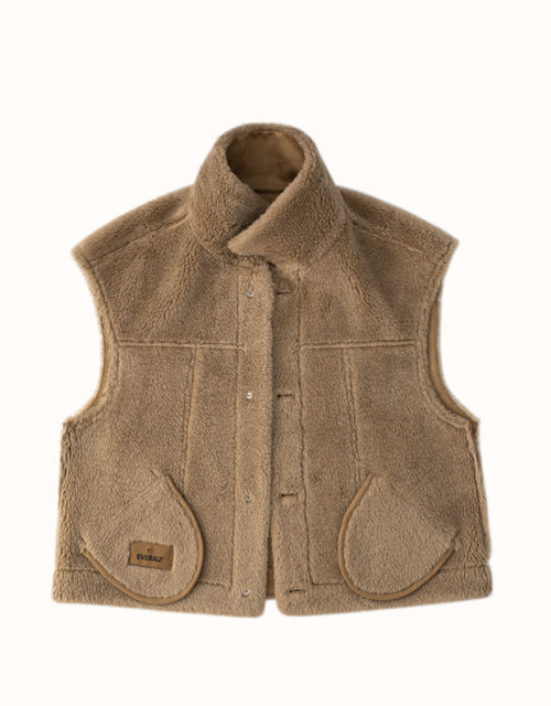 The EVERAU Warda Sleeveless Vest is crafted from luxurious suede and wool, offering both warmth and style. Available in the versatile Chestnut shade, this vest effortlessly complements any outfit. Featuring two spacious pockets for added convenience and a chic, on-trend design, it’s a piece you’ll never want to take off.