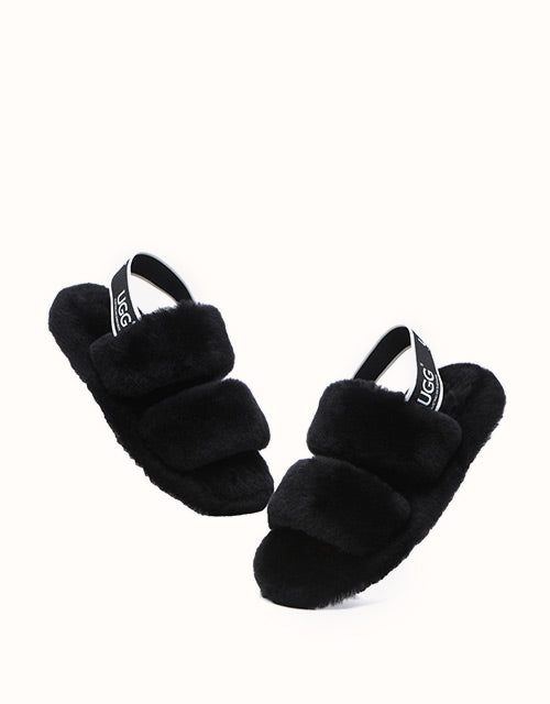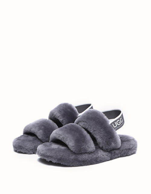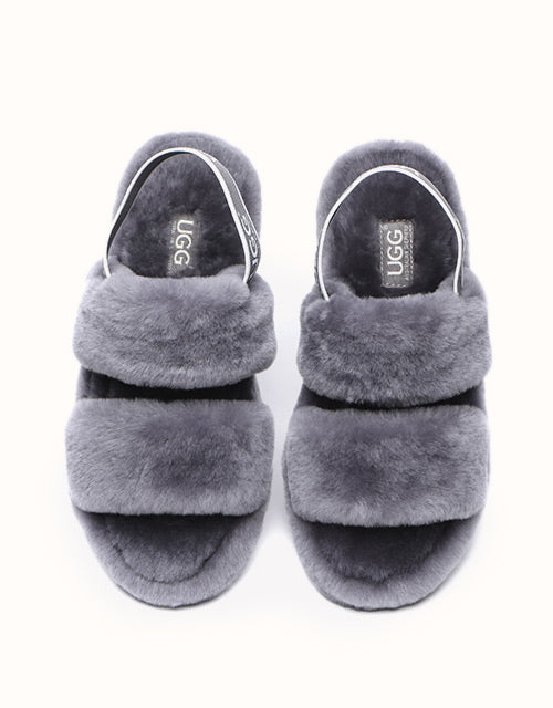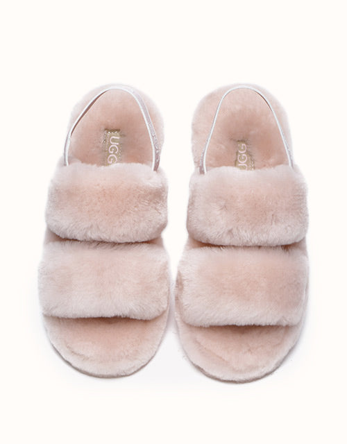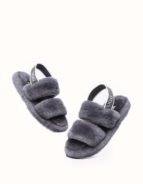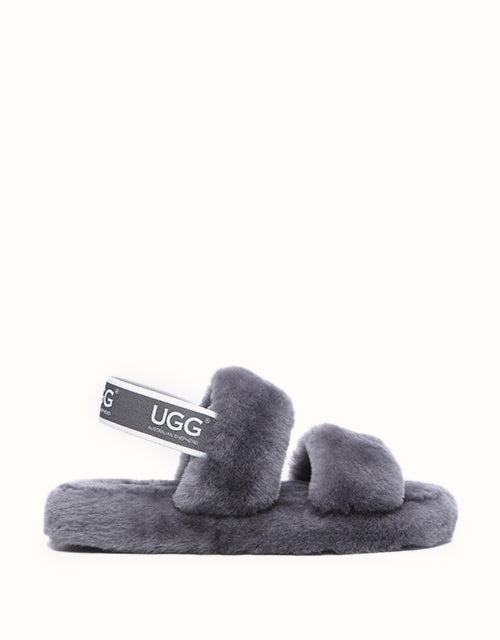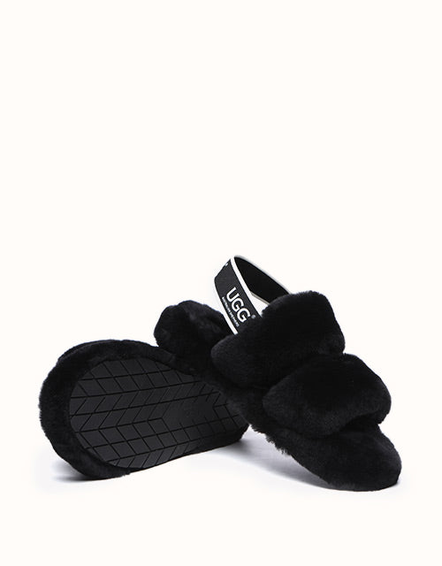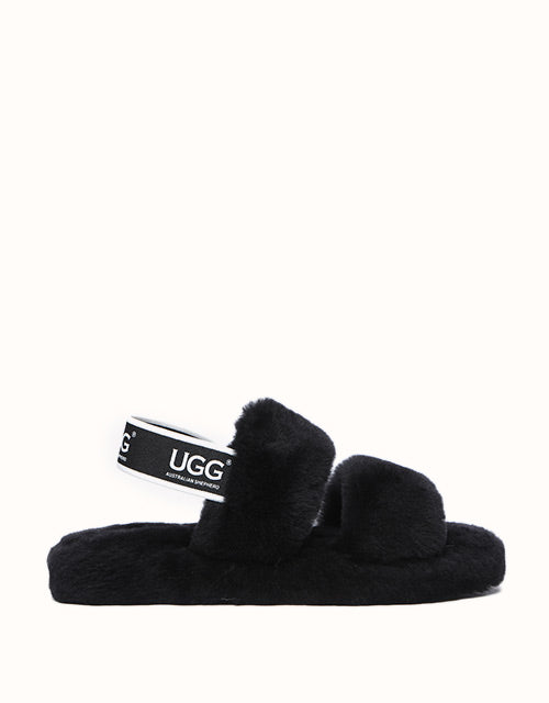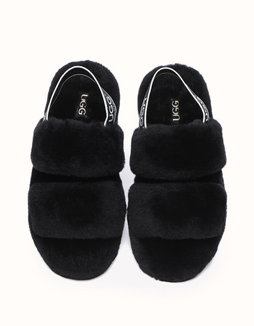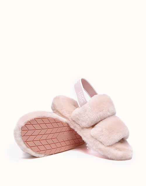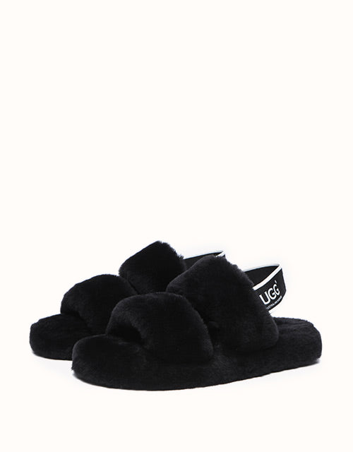 This fashionable slip-on fluff slide style provides an all-day comfort experience. The interior and exterior is ultra-soft, and the elastic ankle strap ensures stability. Choose from Black/Grey/Pink for a modern look that adds a touch of fun to your wardrobe.