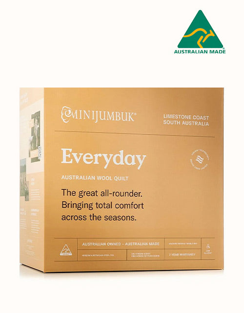 Designed for year-round comfort, the MiniJumbuk Everyday Australian Wool Quilt naturally regulates body temperature through changing seasons. With a super light cotton casing and Airlight Australian wool fill, it provides balanced warmth without heaviness, making it a versatile everyday essential.