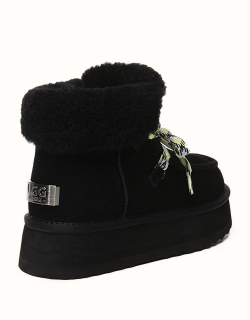 Elevate your style with the UGG EVERAU Honour Sheepskin Boots. Available in four stunning colorways, these classic boots are designed for effortless wear, allowing you to step out in style with ease. Featuring adjustable laces for a customized fit and ultimate comfort, they’re perfect for any occasion. Whether paired with jeans for a casual outing or activewear for running errands, the chic platform sole adds a trendy touch that takes any outfit to the next level.