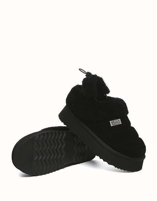 Say hello to the adorable and ultra-comfy EVERAU Paige Slingback Platform Slippers — the perfect new staple for your wardrobe. Featuring a stylish bungee drawstring at the back, these slippers allow you to adjust the fit to your liking while adding a fashionable detail. Available in classic chestnut, black, and sand, they effortlessly complement a wide range of outfits. The raised platform sole gives you a gentle boost and adds a chic touch to any look, whether you're relaxing at home, out for errands, or grabbing a coffee with friends.