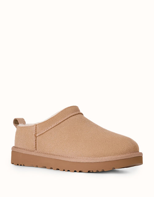 The UGG® Classic Micro reimagines the iconic boot with a modern low-profile design. Made with genuine suede and plush sheepskin for natural comfort, it’s set on a lightweight sugarcane EVA outsole for cushioned support and an easy, slipper-like feel.