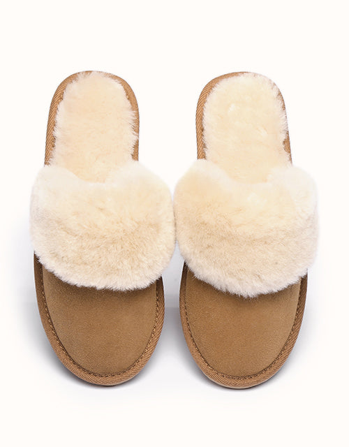This slipper has fluffy collar scuff ,made from sheepskin and wool , which makes me warm and comfortable to wear at home, especially in this winter, it is best choice to wear this slipper ,and also extremely comfortable to walk in as well .highly recommend!!!